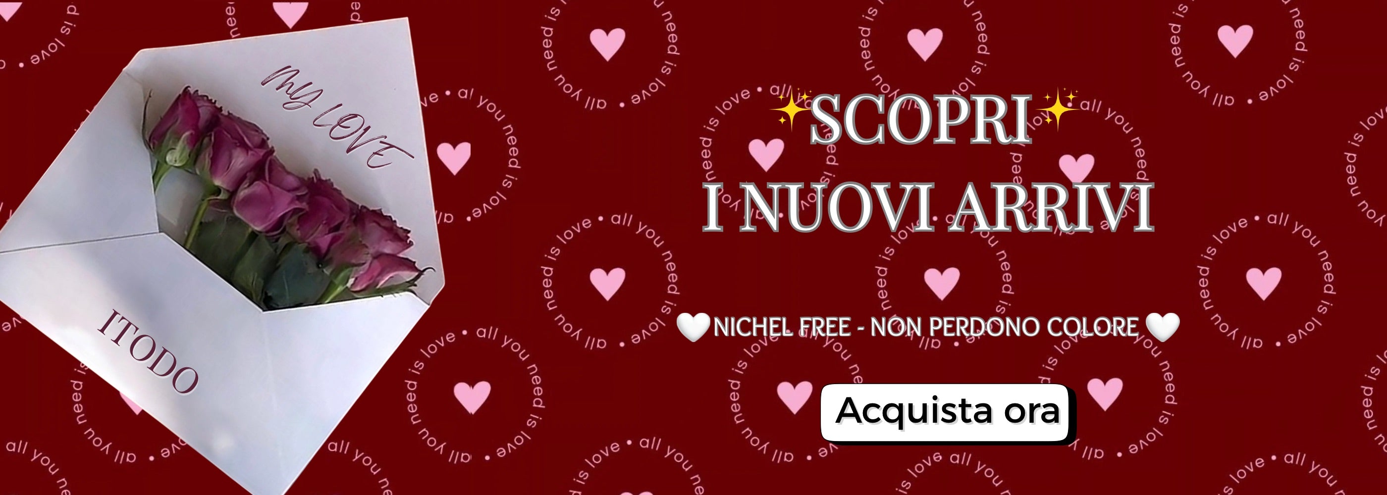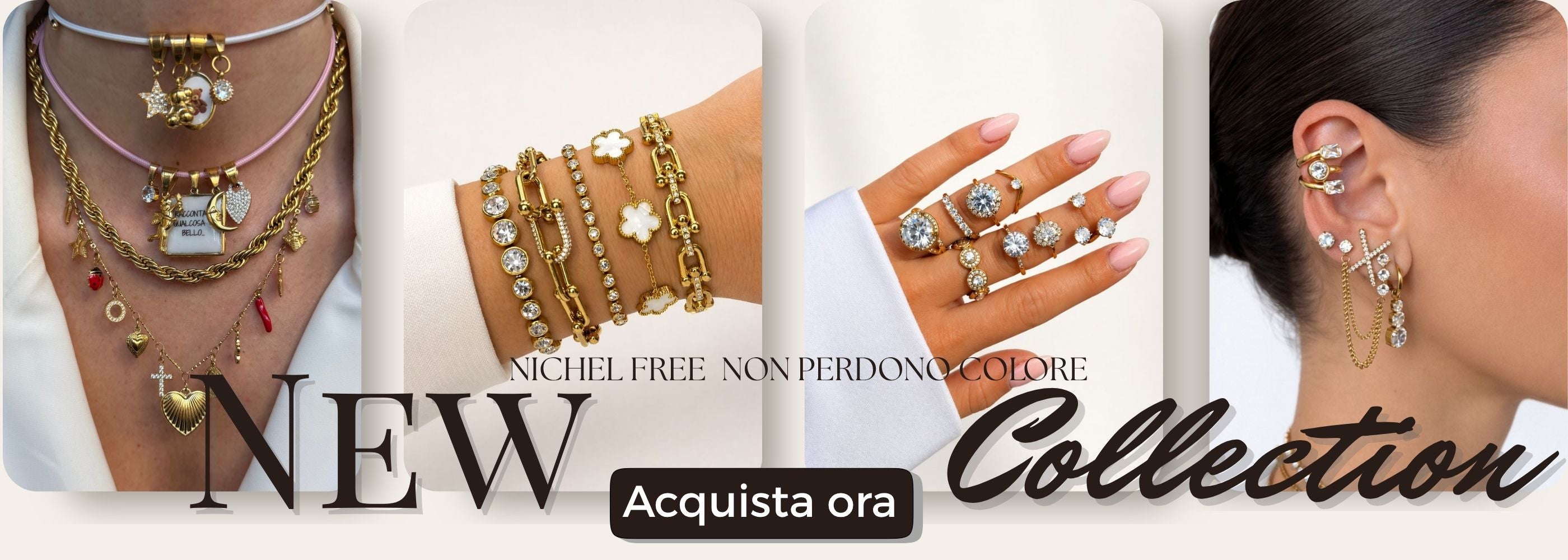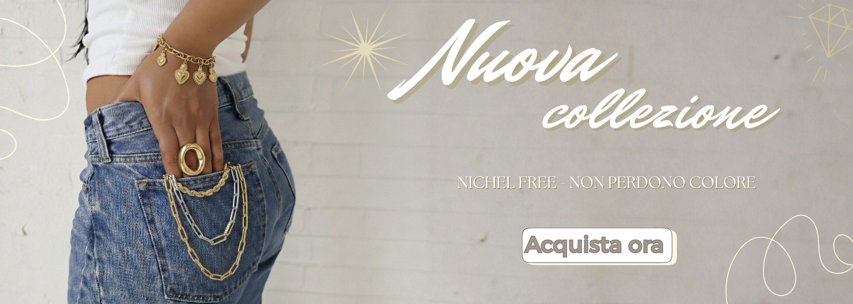 Tutti i nostri gioielli sono in acciaio inox, anallergici e non perdono colore